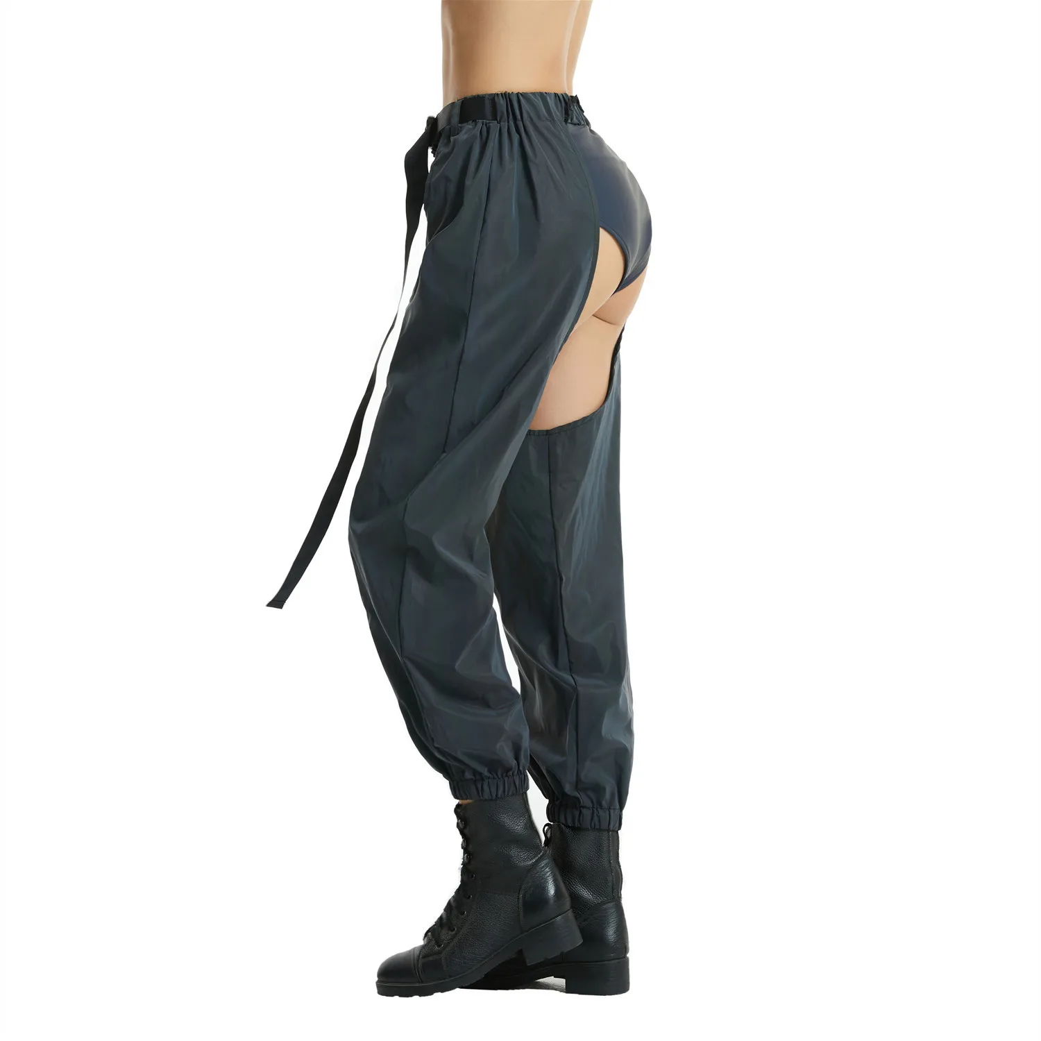 Crotchless Women Techwear Cargo Pants Colorful Reflective Hollow Out INS Harajuk