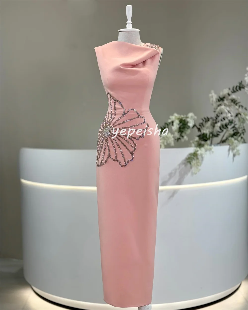Customized Sparkle Exquisite Jersey Pleat Flower Beading Sequined Straight High