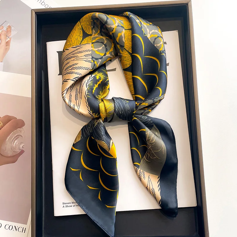 Cute Cat Print Silk Square Scarf Women Luxury Design 70*70cm Soft Satin Hairband