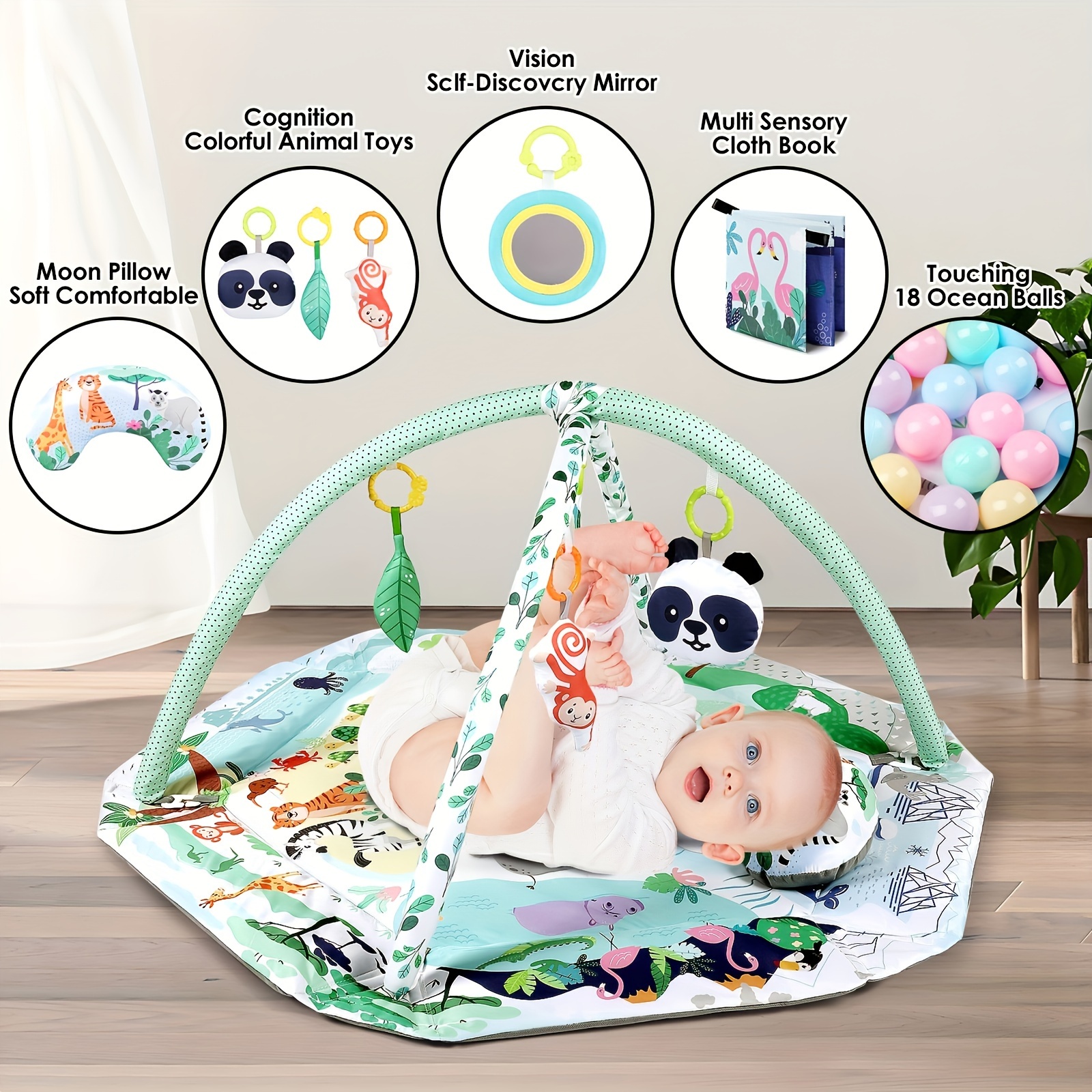 SPECIFICATIONSApplicable Age Group: 0+Brand: DEARLOMUMColor: GreenItem ID: CR92367Origin: Zhejiang,ChinaDearlomum 4-in-1 Tummy Time Mat, Baby Gym Activity Play Mat, Newborn Play Mats fSKU: 44321447$57.63PriceItems*Game PadAdd to CartBuy Now