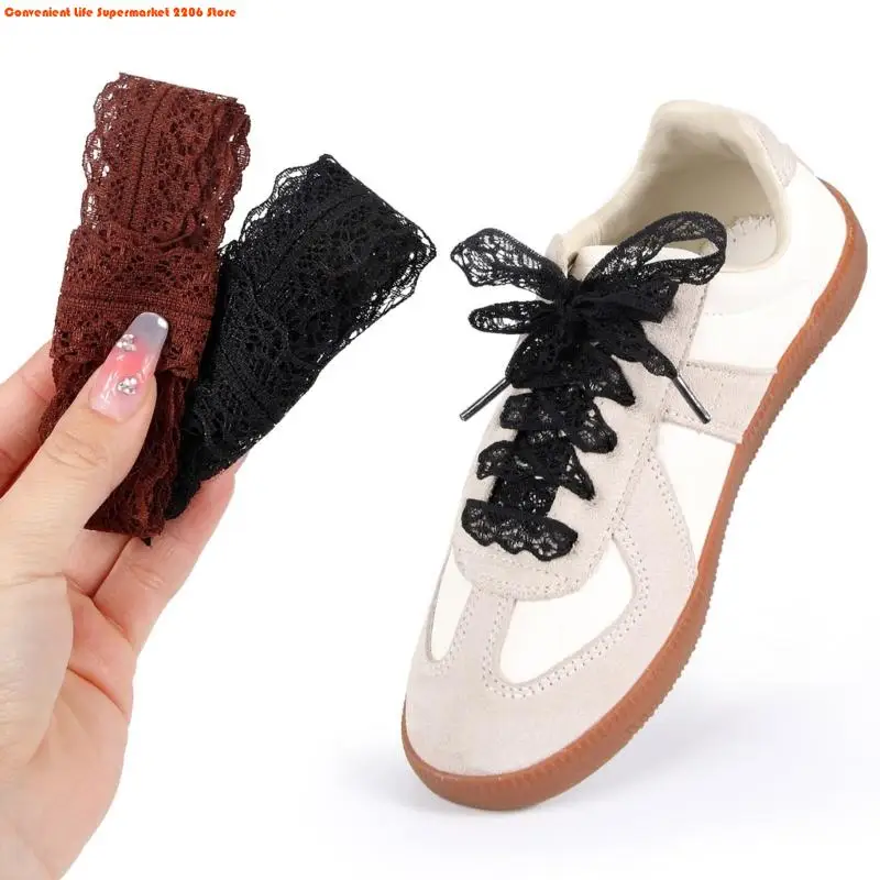 E06E 1 Pair Lace Shoelaces for Women and Girls 3CM Wide Flat Design Shoestrings