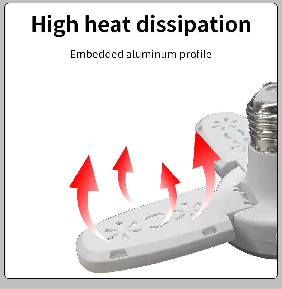 • Foldable Design :The fan-shaped LED bulb can be folded, making it easy to store and transport.