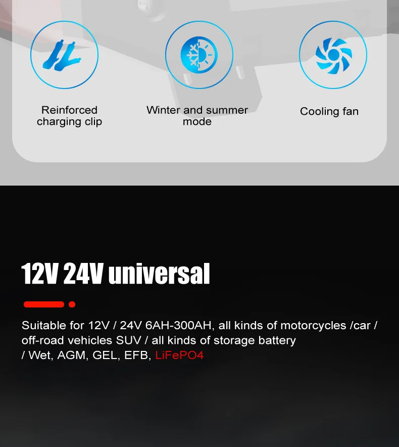 So why wait? Order your 7-segment 12V24V motorcycle battery charger and automotive battery intelligent charger today and keep your battery in top condition for years to come!