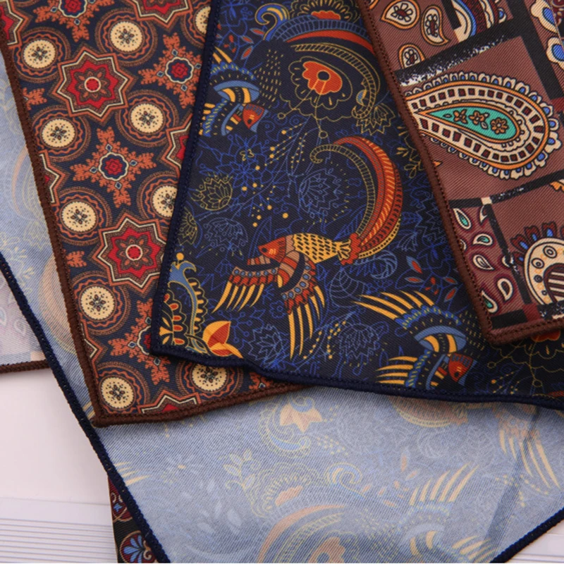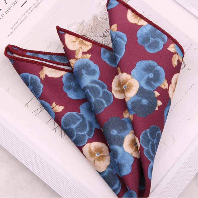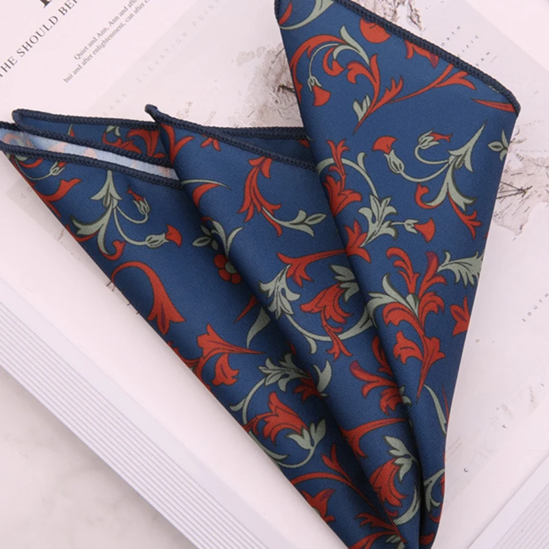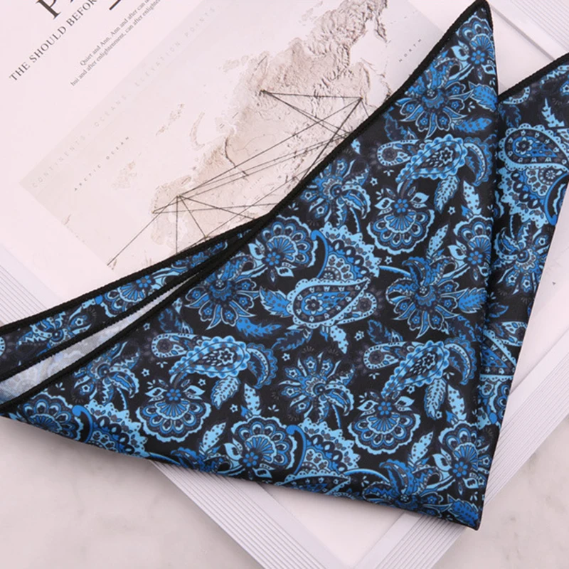 Fashion Blue Color Pocket Square Mens Pasiley Floral Dots Printed Hankderchief P
