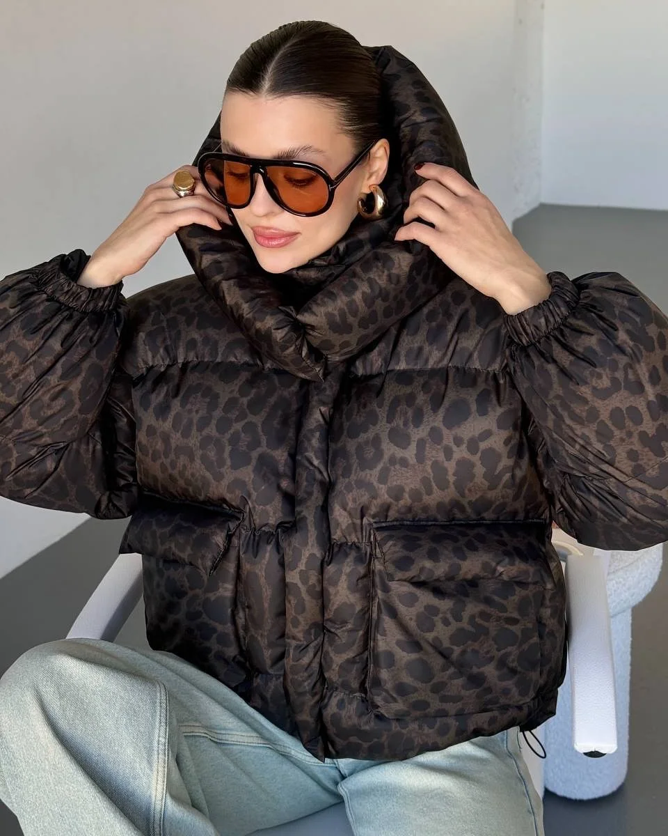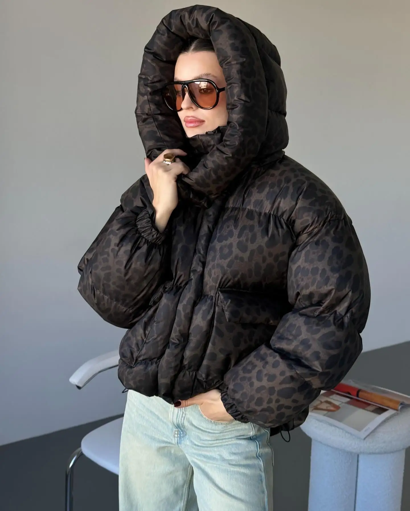 Model Number: Fashion Leopard Print Hooded Puffer Jacket Women