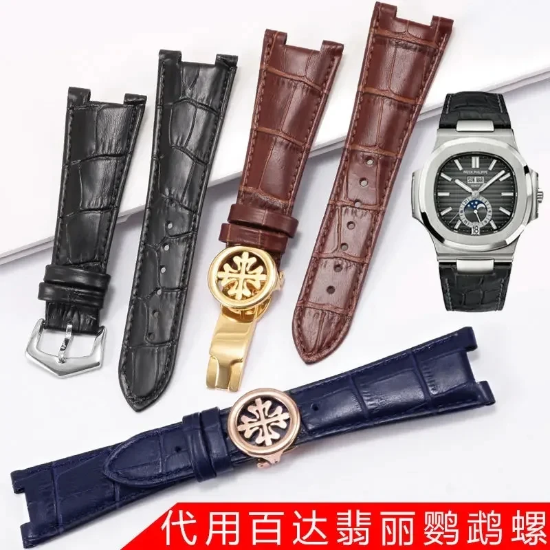 Genuine Leather Watch Strap For Patek Philippe 5711 5712G Waterproof Concave Fol