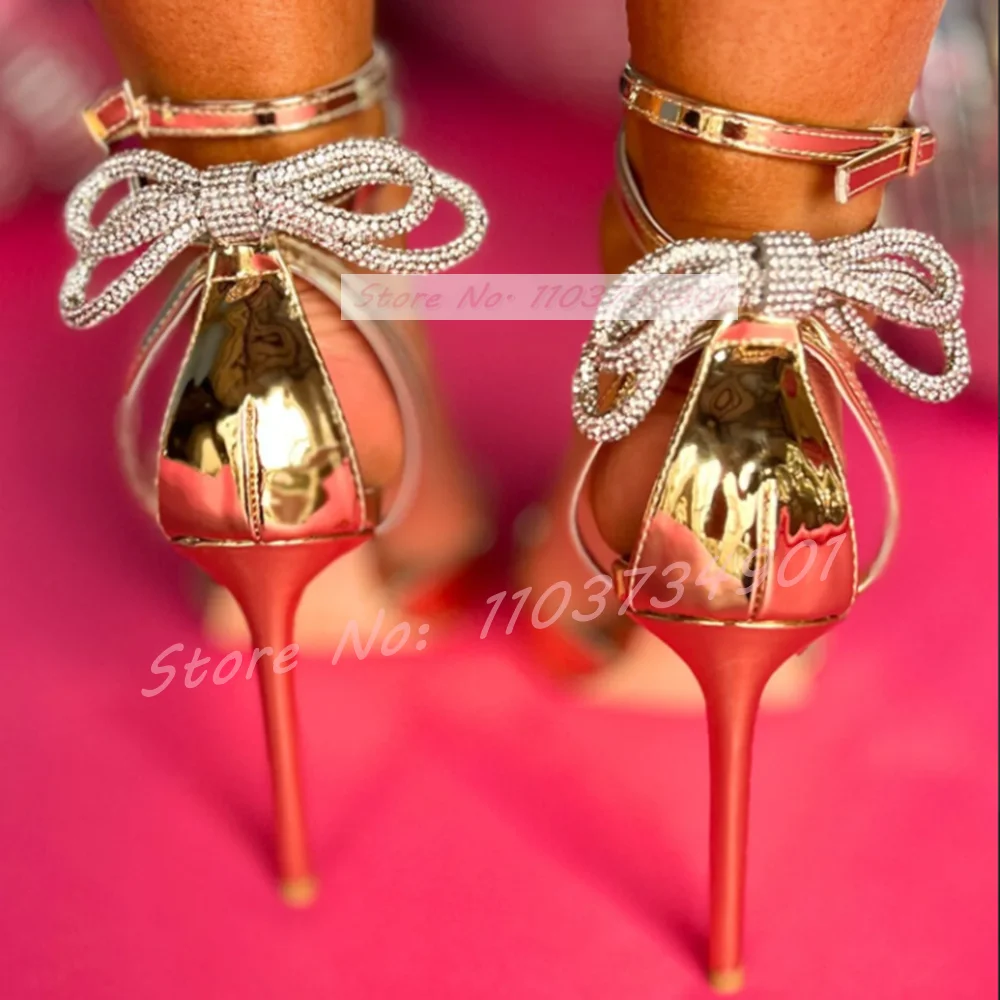 Model Number: Gold Pointy Toe Crystals Bow-Knot Sandals