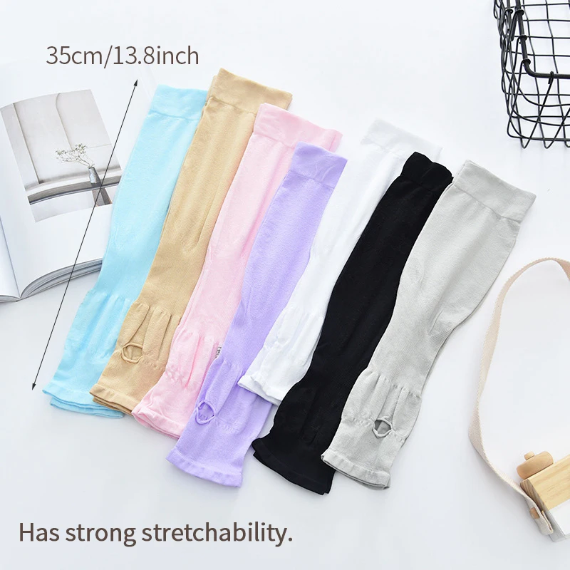 3. High elasticity: The fabric can be stretched to about 2 times the length, high elasticity is very durable, suitable for a wide range of people. The length is 35 cm, but our sun protection sleeves are highly stretchable.