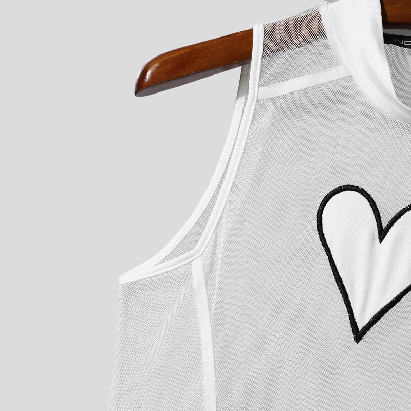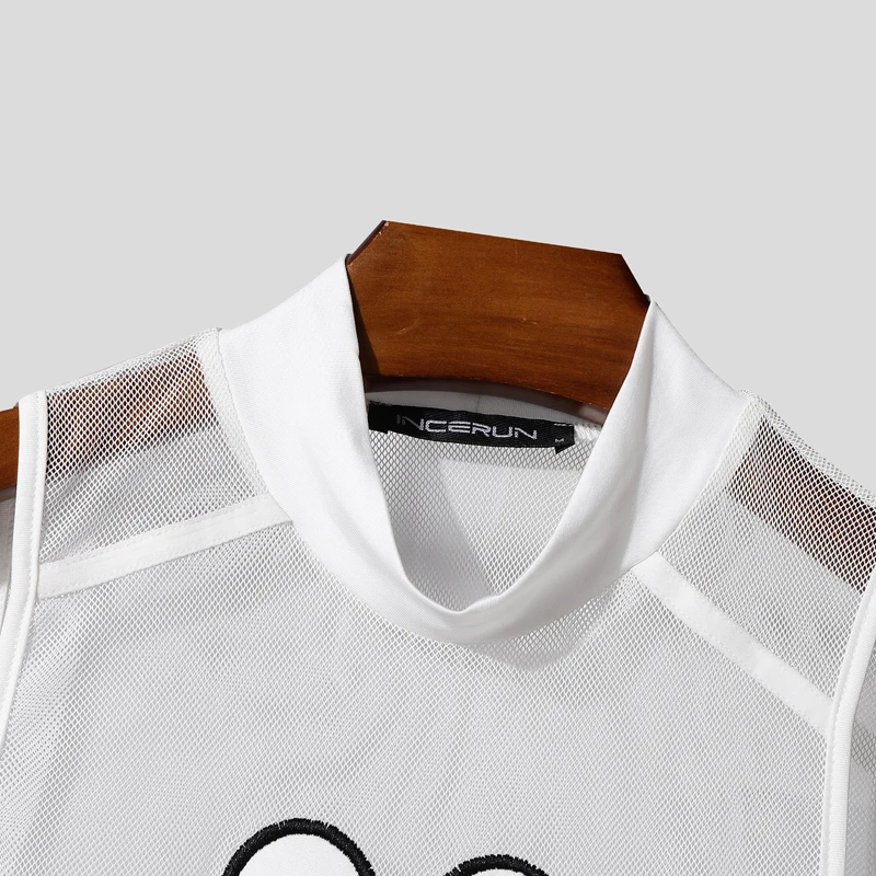 INCERUN Men Bodysuits Mesh Patchwork See Through O-neck Sleeveless Male Rompers