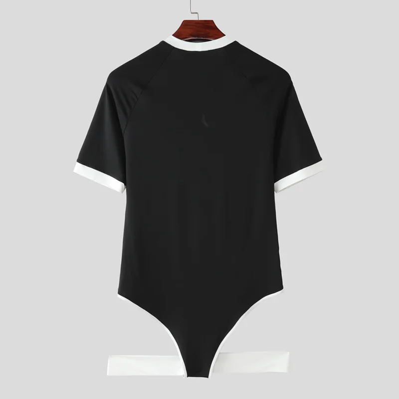 INCERUN Men Bodysuits Patchwork O-neck Short Sleeve Summer Male Rompers Streetwe