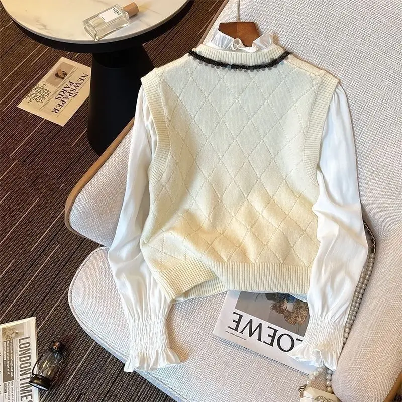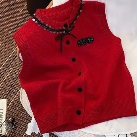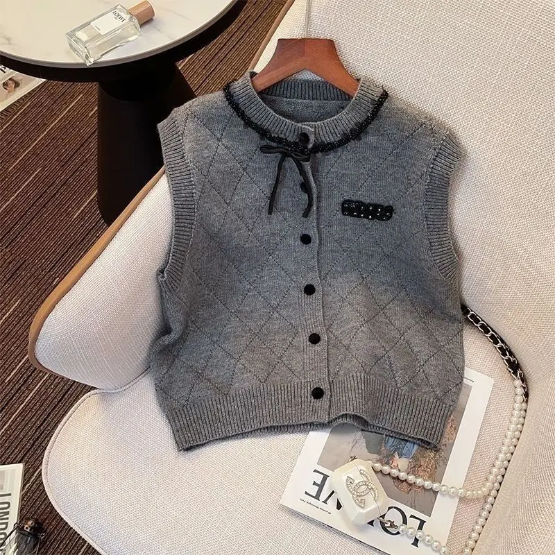 Knitted Vest Vest Women's New Style Bow Spring and Autumn Sweater Fashionable Cu