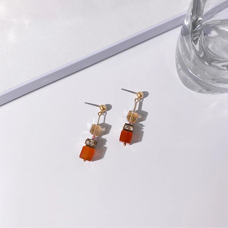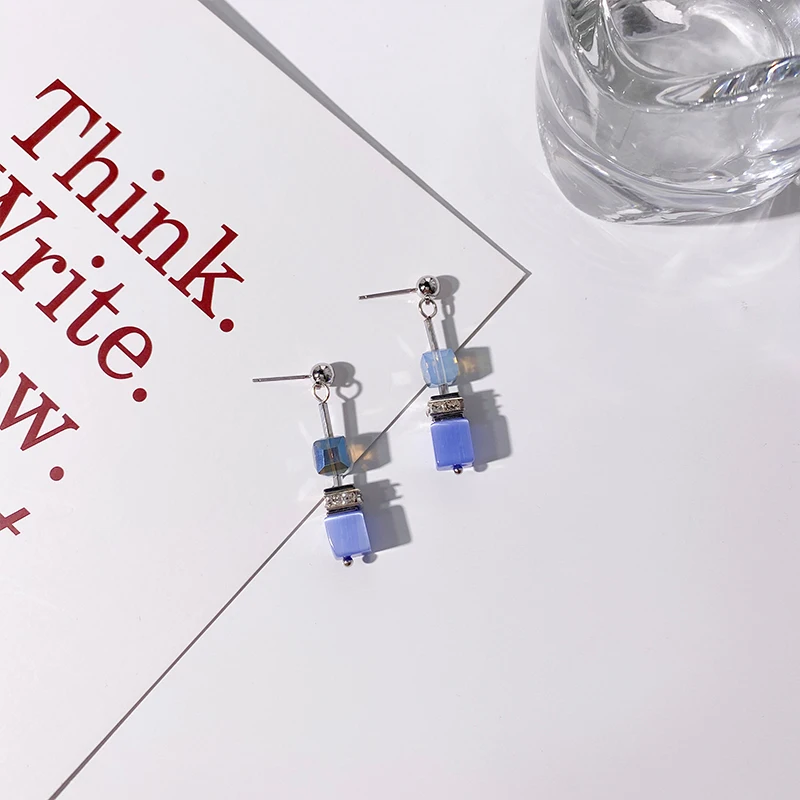 Korea Fashion Coloured Stone Earrings Summer Geometric Square Short Pendant Earr
