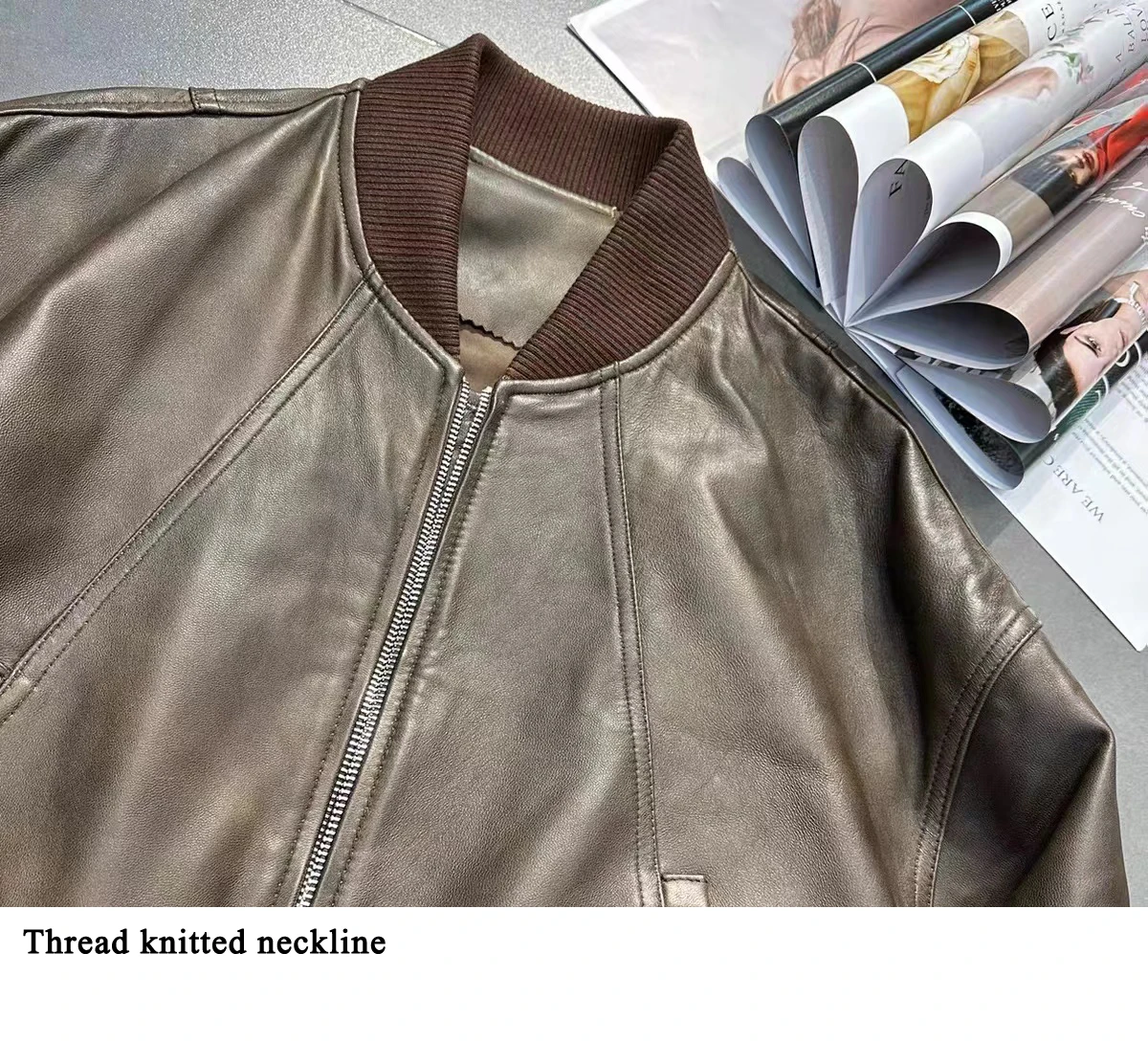Leather Cropped Bomber Jacket For Women 2025 Winter European Old Money Designer
