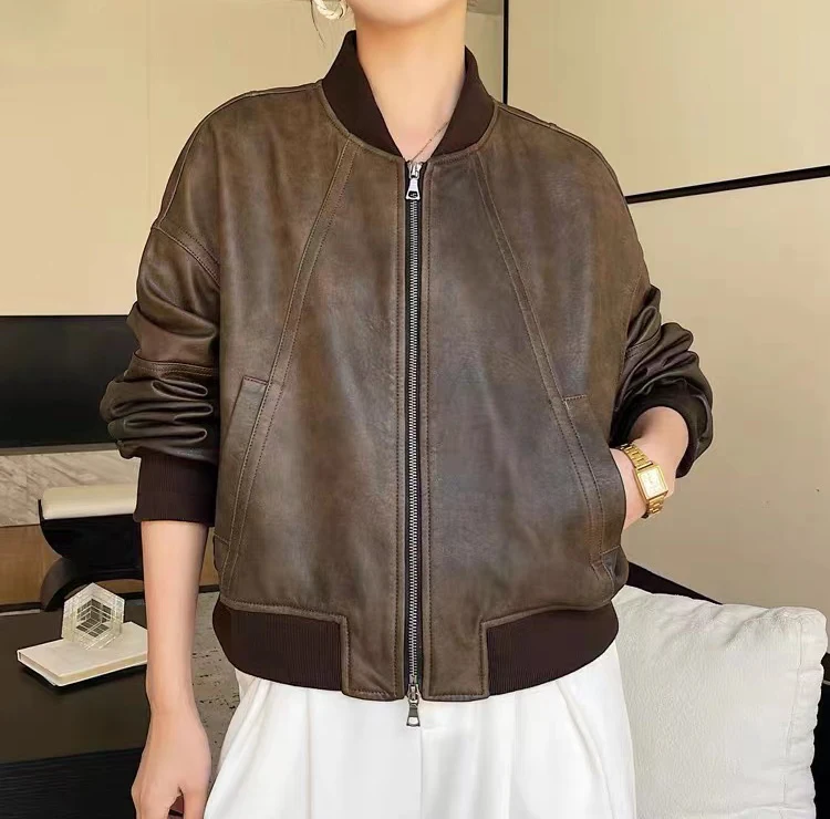 Leather Cropped Bomber Jacket For Women 2025 Winter European