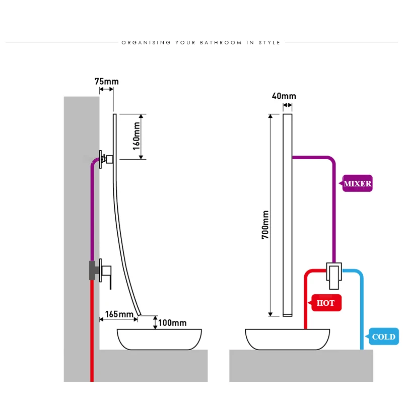 Luxury 70cm Wall-Mounted Bathroom Basin Faucet Hot Cold Water Single Handle Basi
