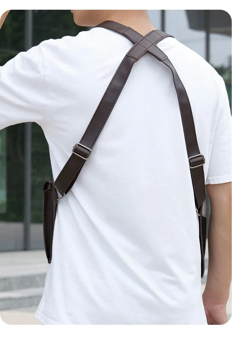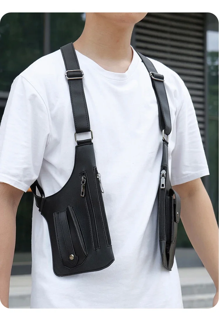 Luxury Design Men's Tactical Vest Bag High Quality PU Leather Man Chest bag Phon