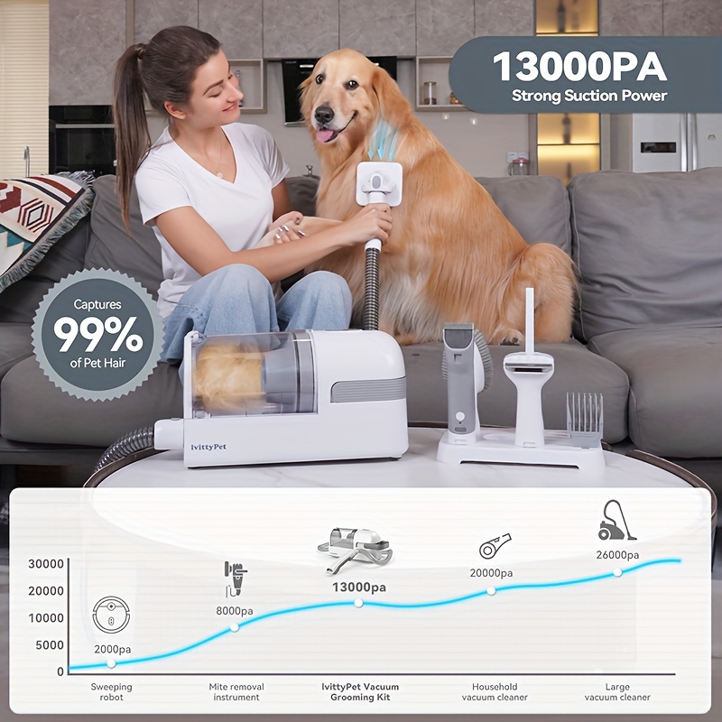 lvittyPet Dog Grooming Kit & Pet Hair Vacuum(48dB Low Noise) Pet Grooming Vacuum