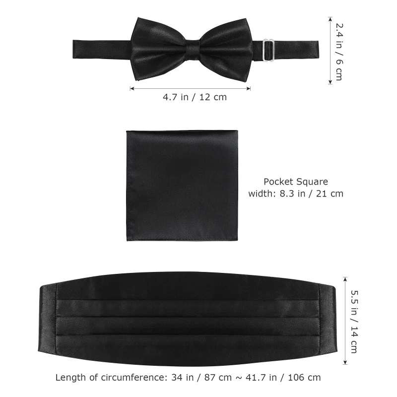 -Adjustable design: This bow tie and cummerbund are adjustable to fit most men.