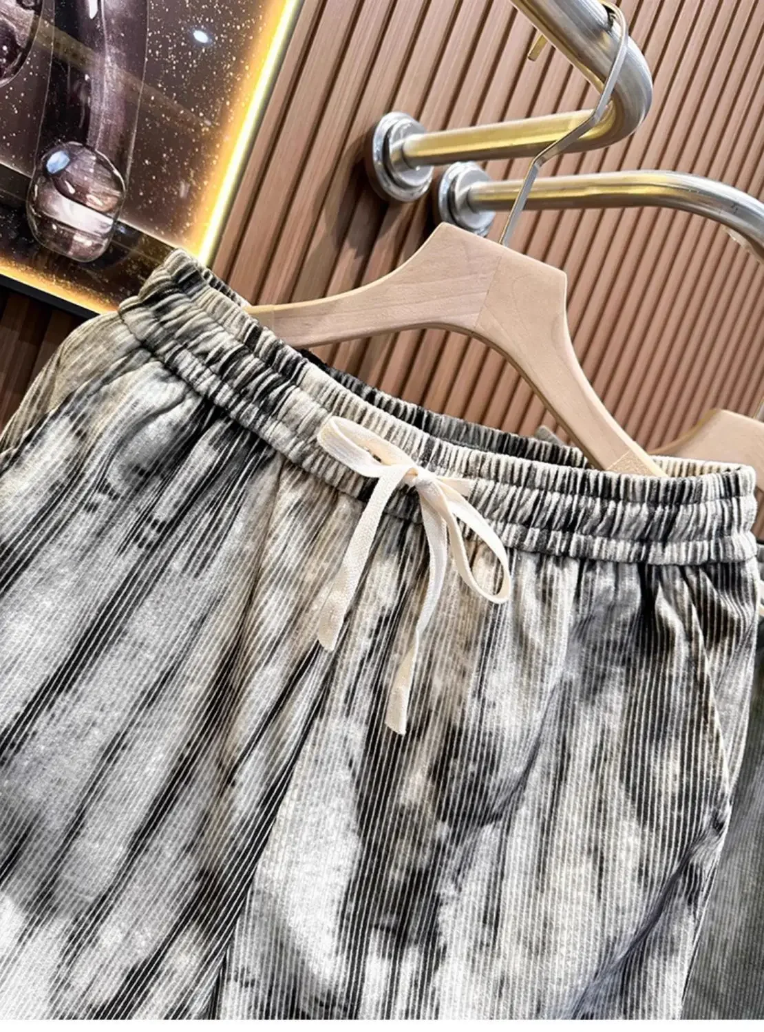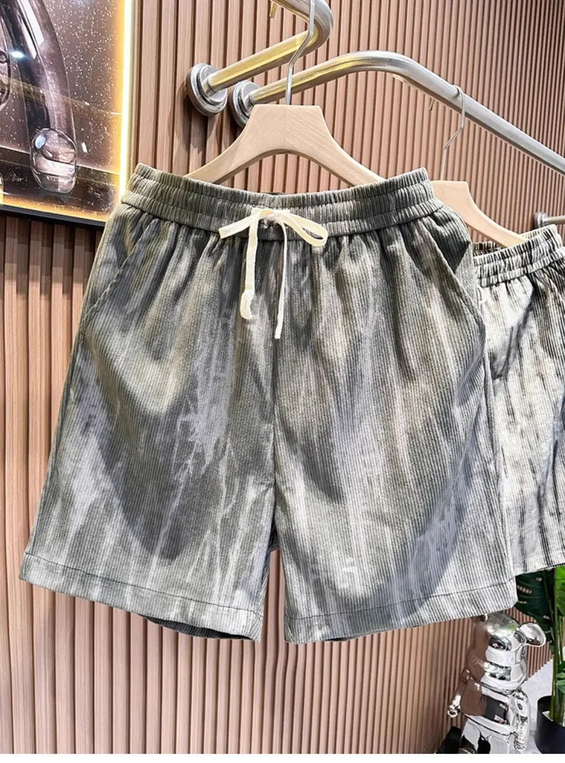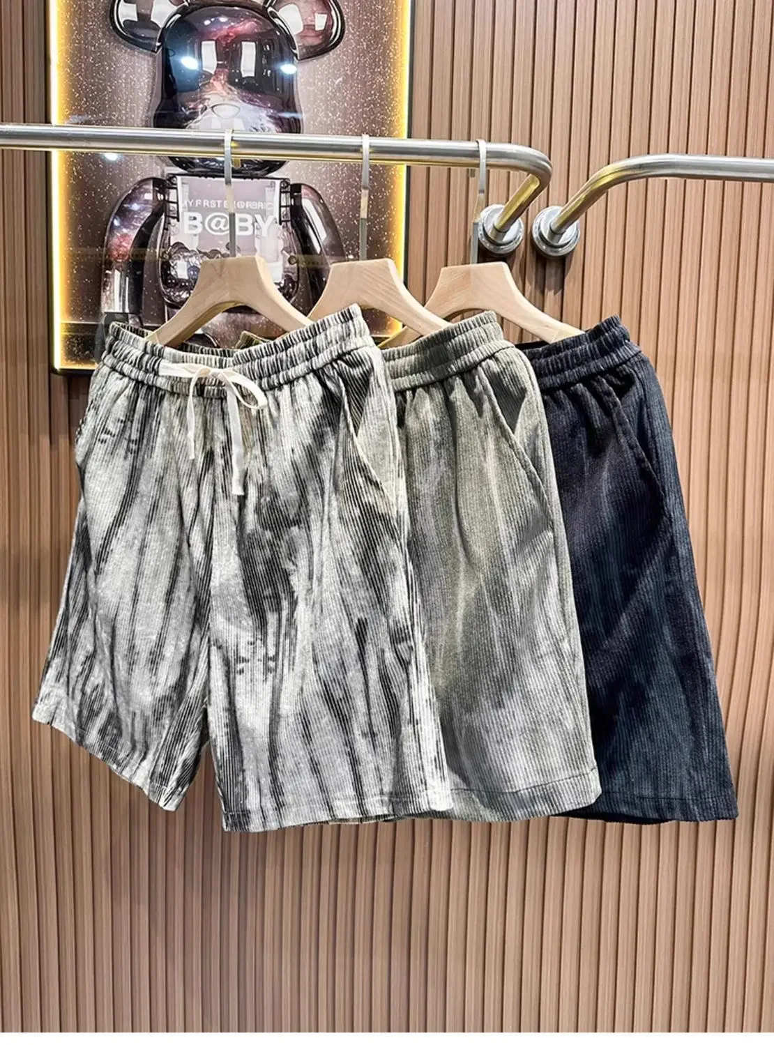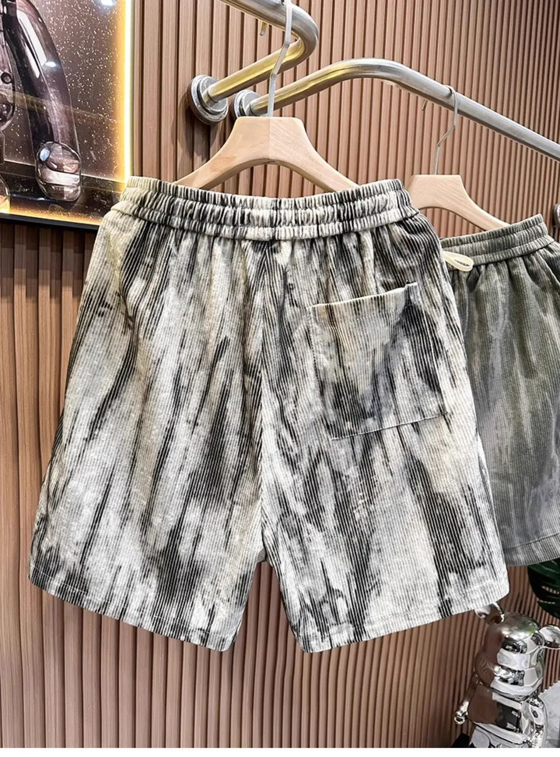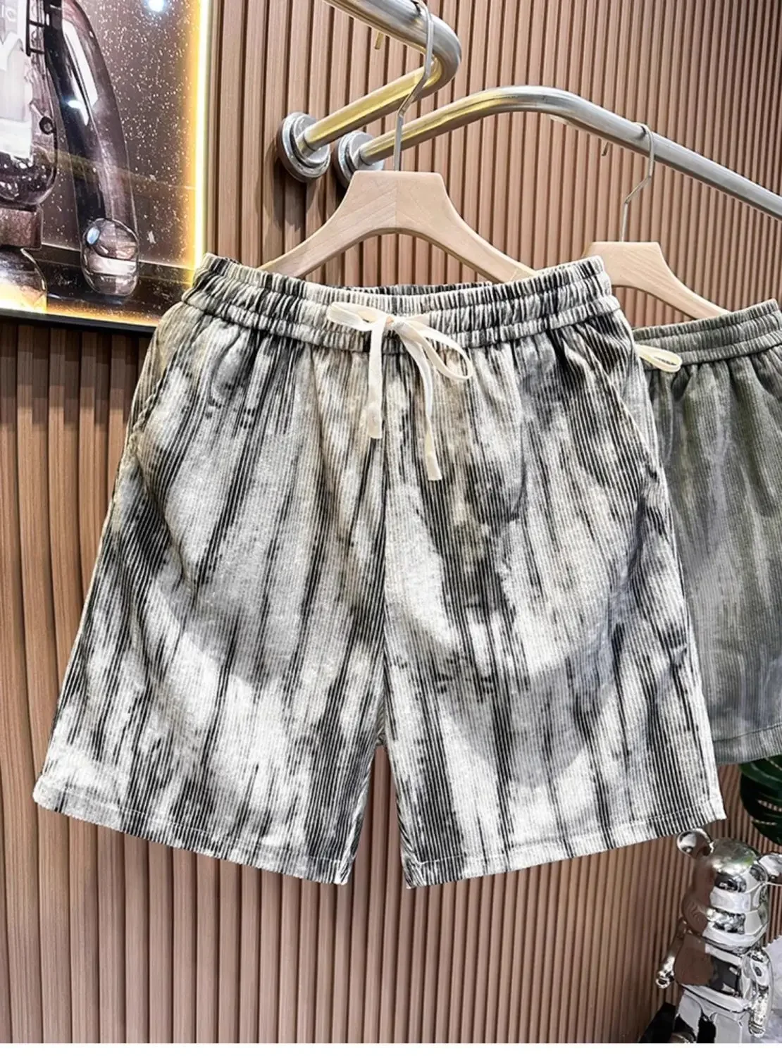 Men's New Ice Silk Sports Drawstring Pocket Printed Loose Casual Five-point Beac