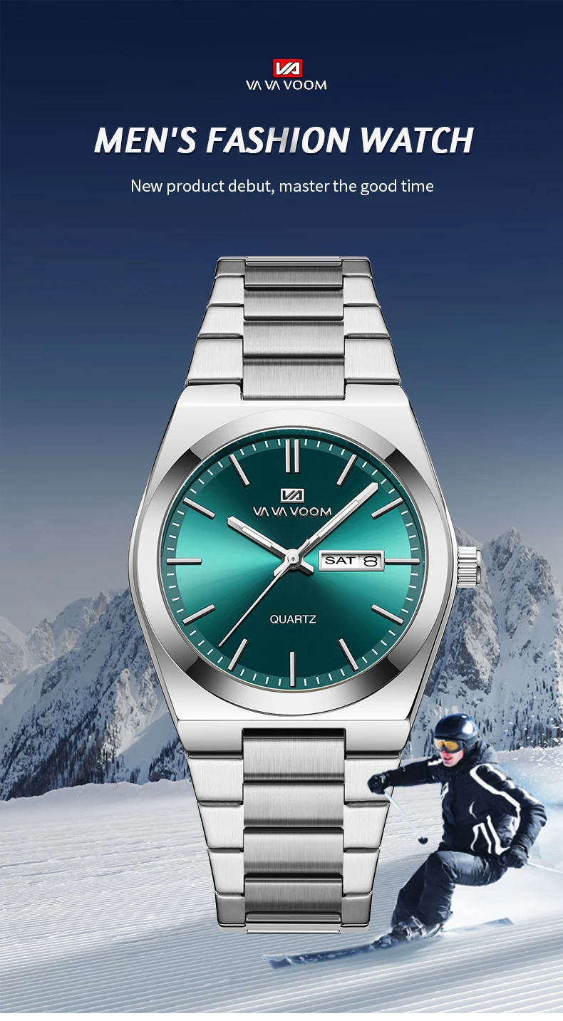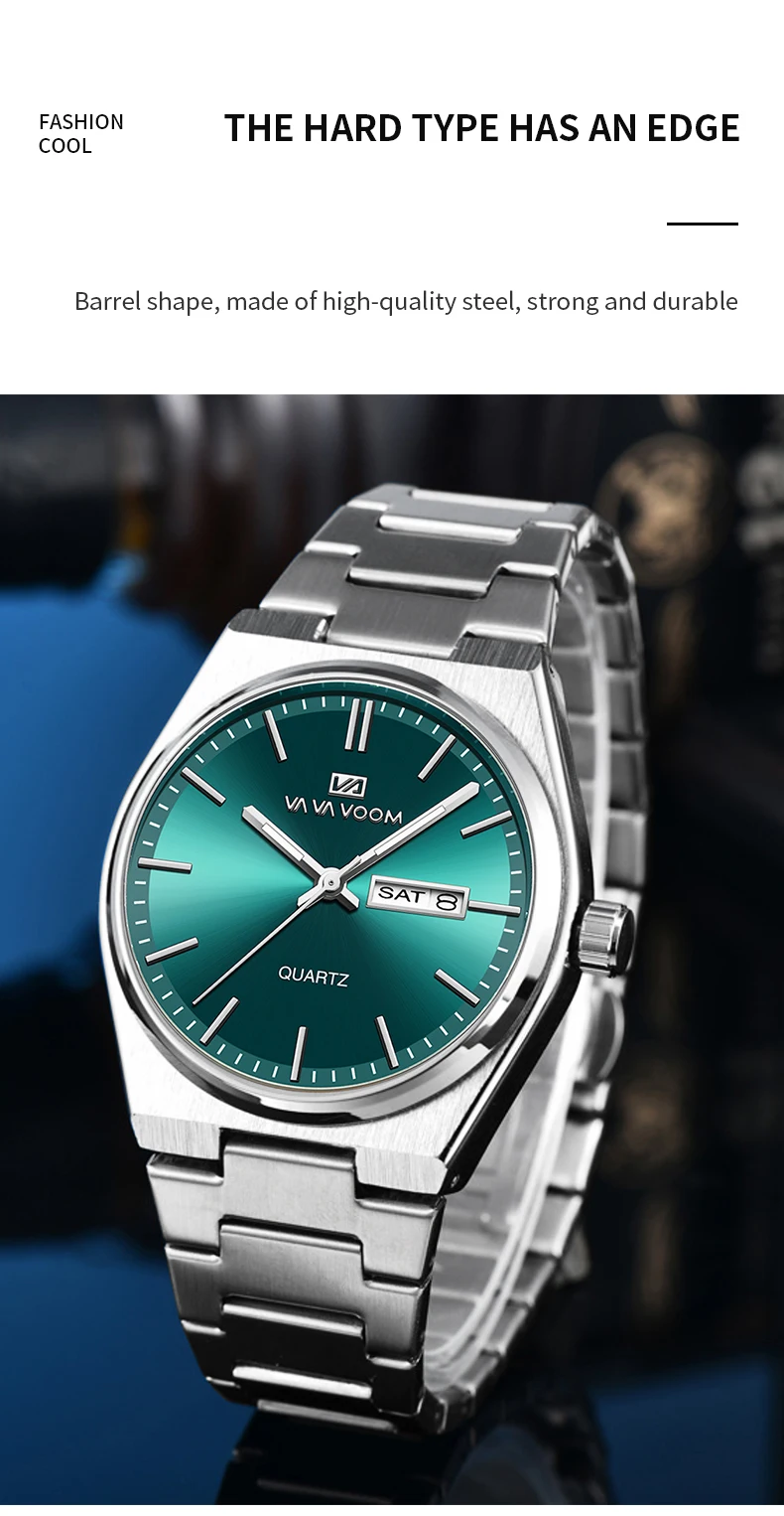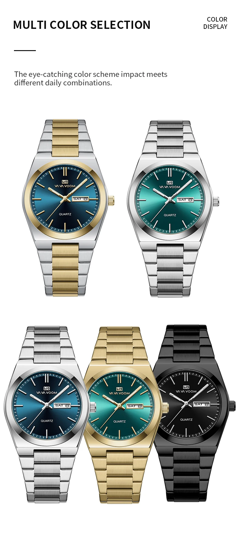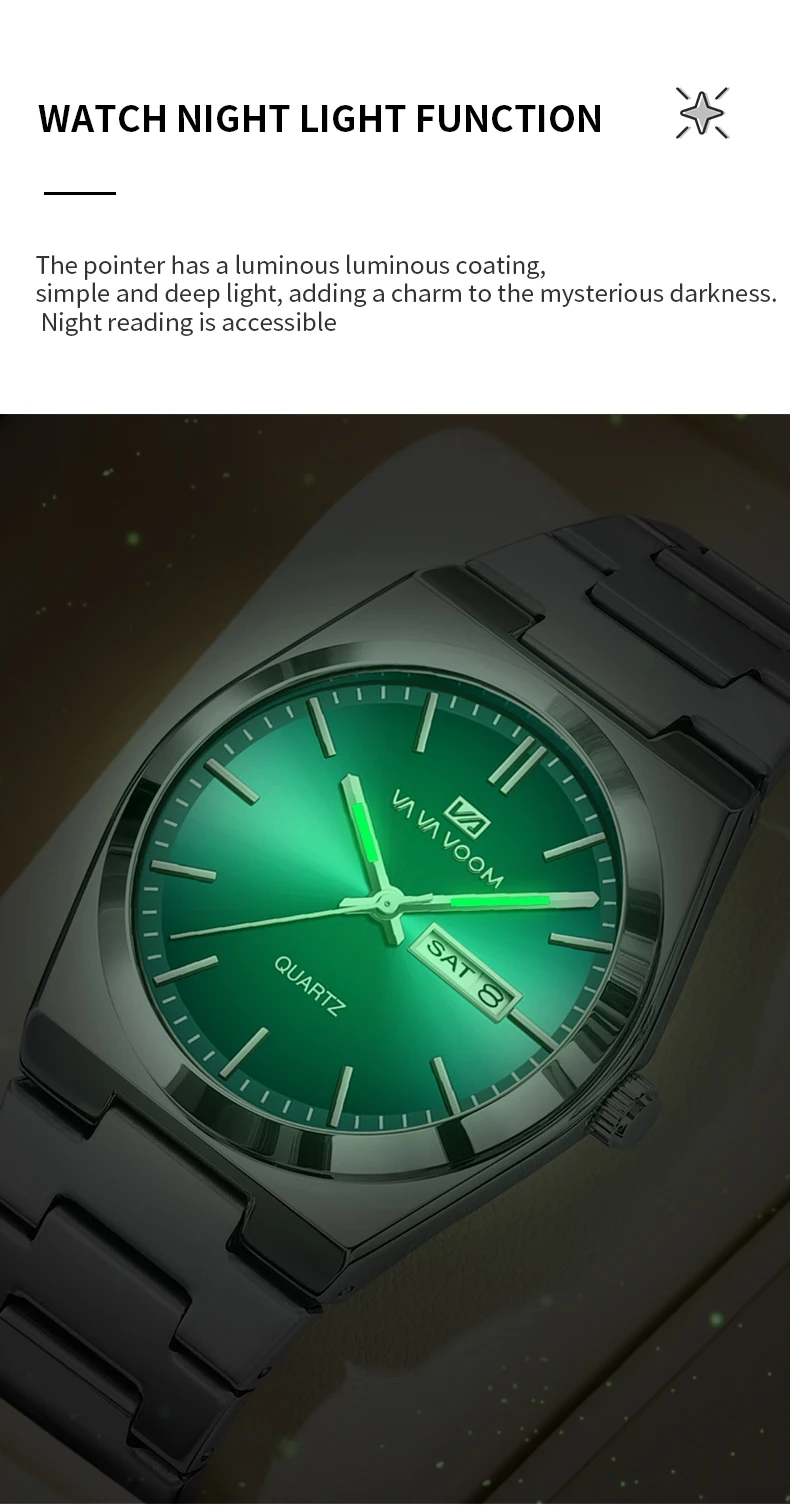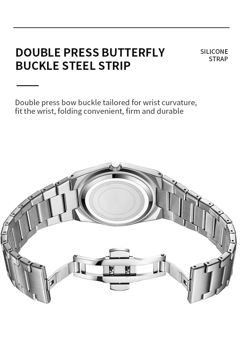 Men Watch Light Luxury Brand Stainless Steel 40mm Double Calendar Waterproof Mal