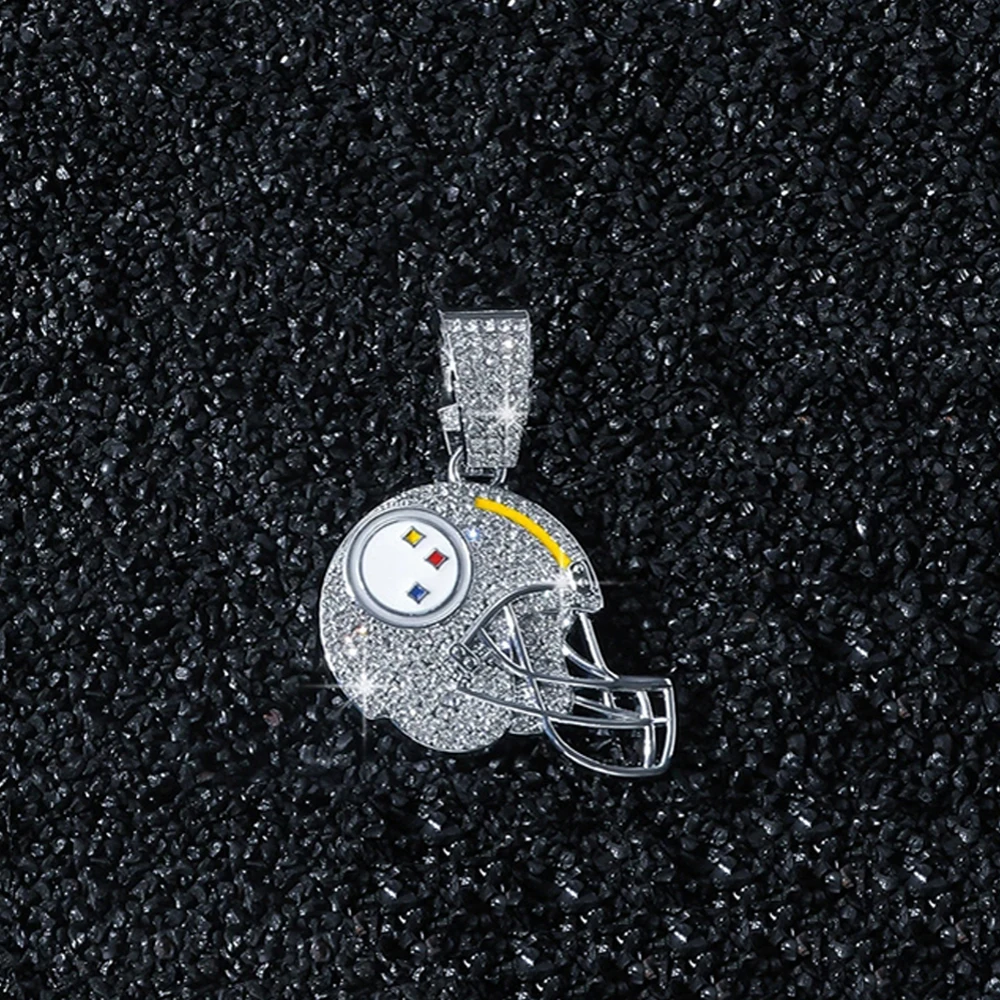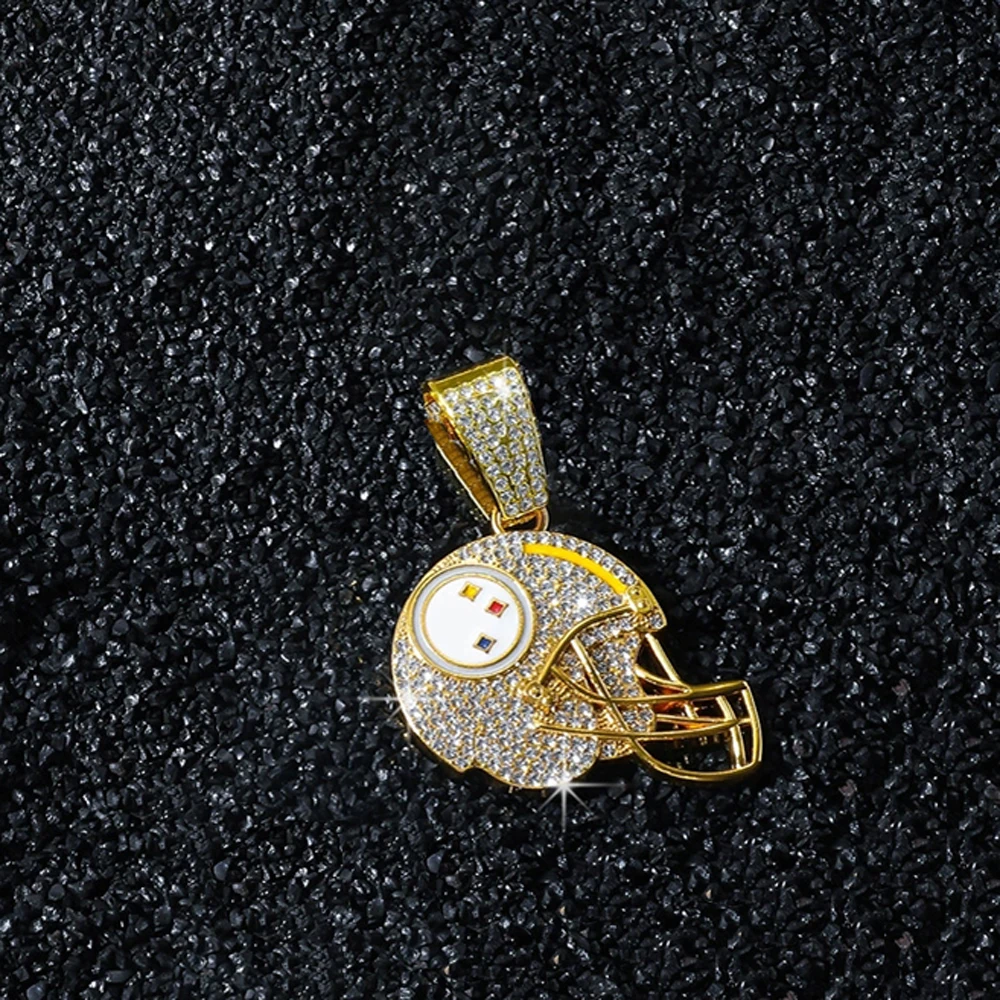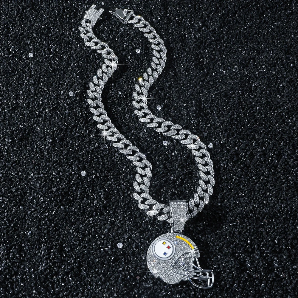 Men Women Hip Hop Rugby Helmet Pendant Necklace with 13mm Shiny Miami Cuban Chai