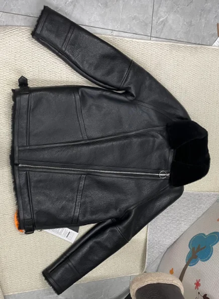 Natural Merino Sheepskin Wool Double Faced Fur Coat Women Motorcycle Leather Jac