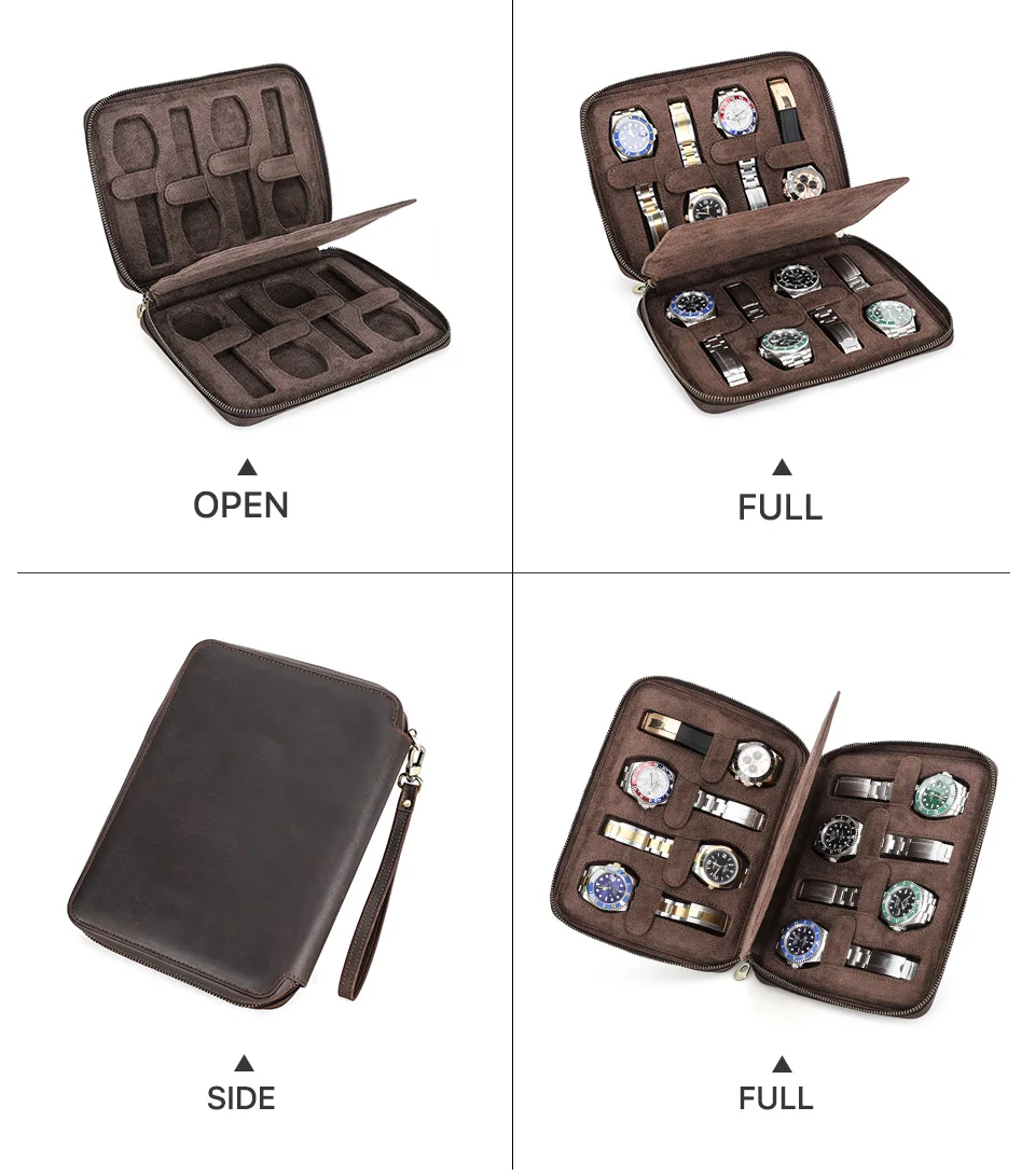 New 2/4/6/8 Slots Genuine Leather Watch Case Travel Portable Watch Organizer Jew