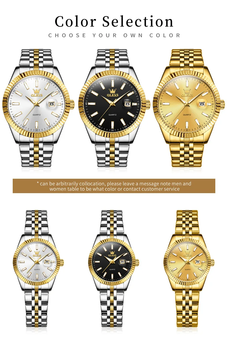 OLEVS 5593 Couple Watch Fashion Business Waterproof Stainless Steel Watch Luxury Brand Classic Date Week Clock Men Women WatchFollow Store - Get Fan Exclusive Price
