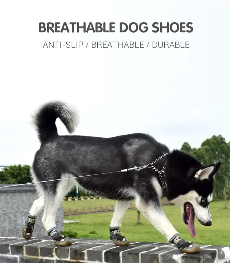 4Pcs/Set Dog Shoes for Large Dogs Breathable Professional Outdoor Dog Shoes Anti-Slip Durable Pet Shoes for Hiking Rubber Sole