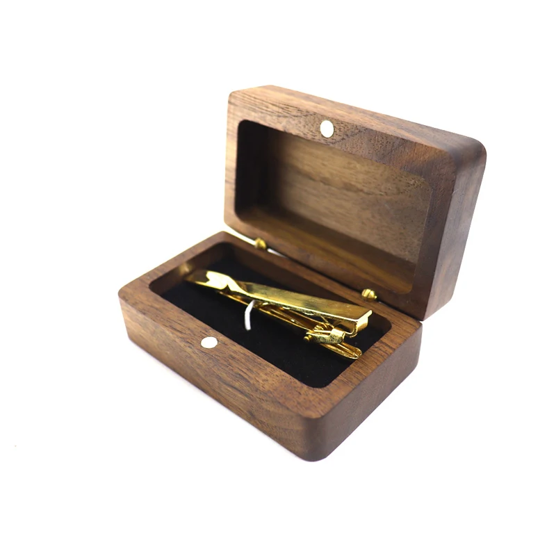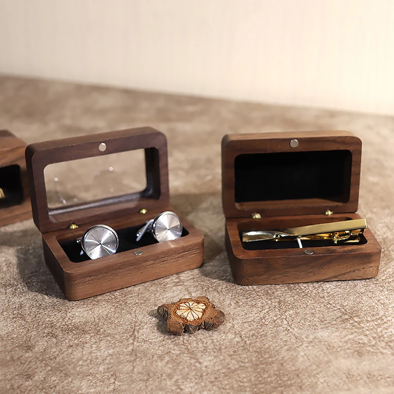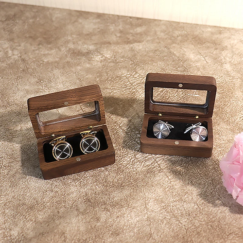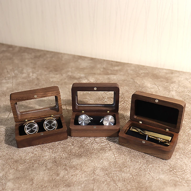 Solid Wood Black Walnut Window Exquisite Cufflink Box Sleeve Nails French Cufflink Collar Clip Box Package Gift Box