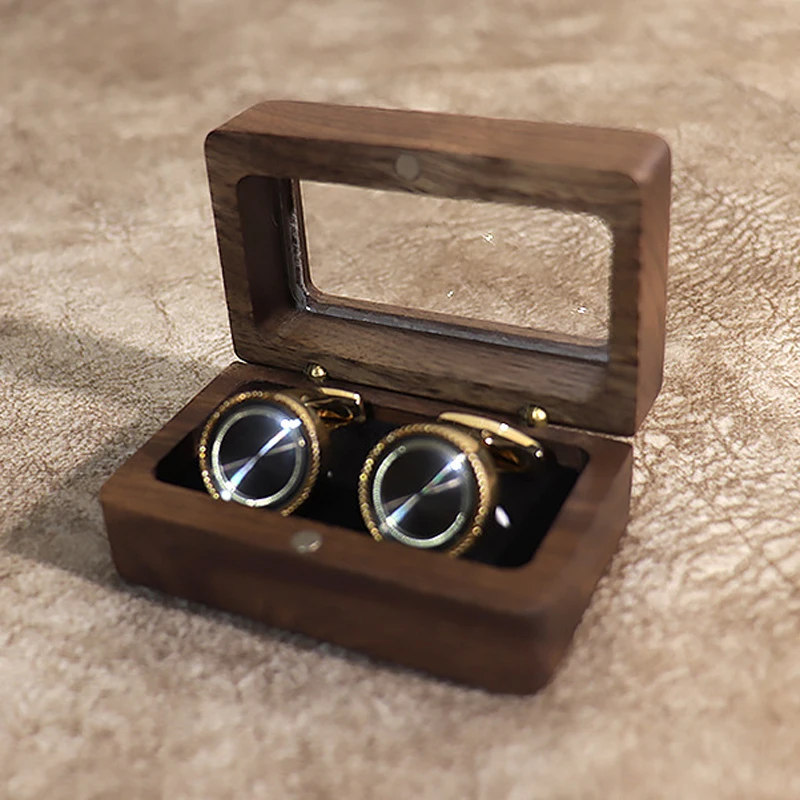 Solid Wood Black Walnut Window Exquisite Cufflink Box Sleeve Nails French Cuffli