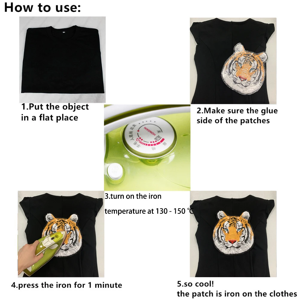The domineering tiger Embroidery Patches for Clothing Applique Animal Iron on B