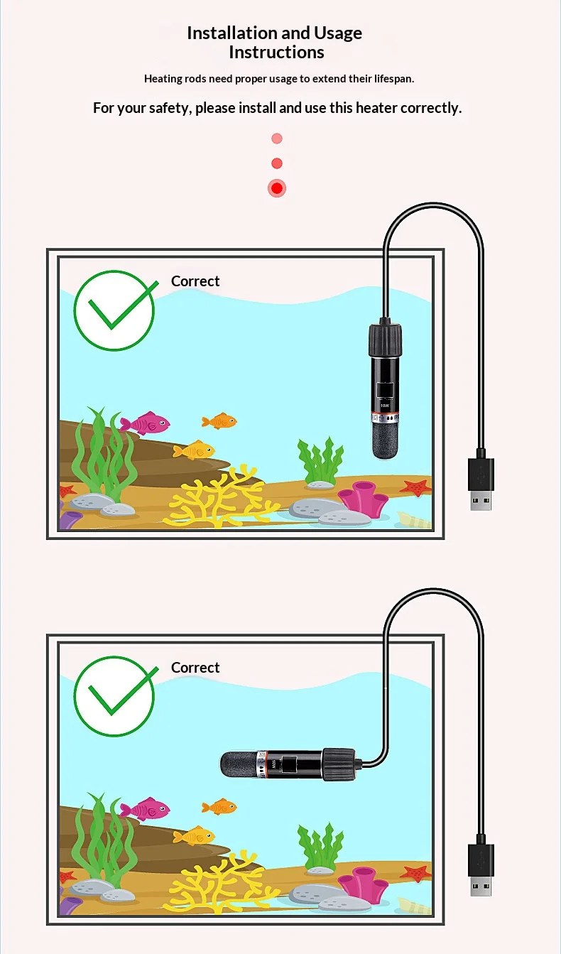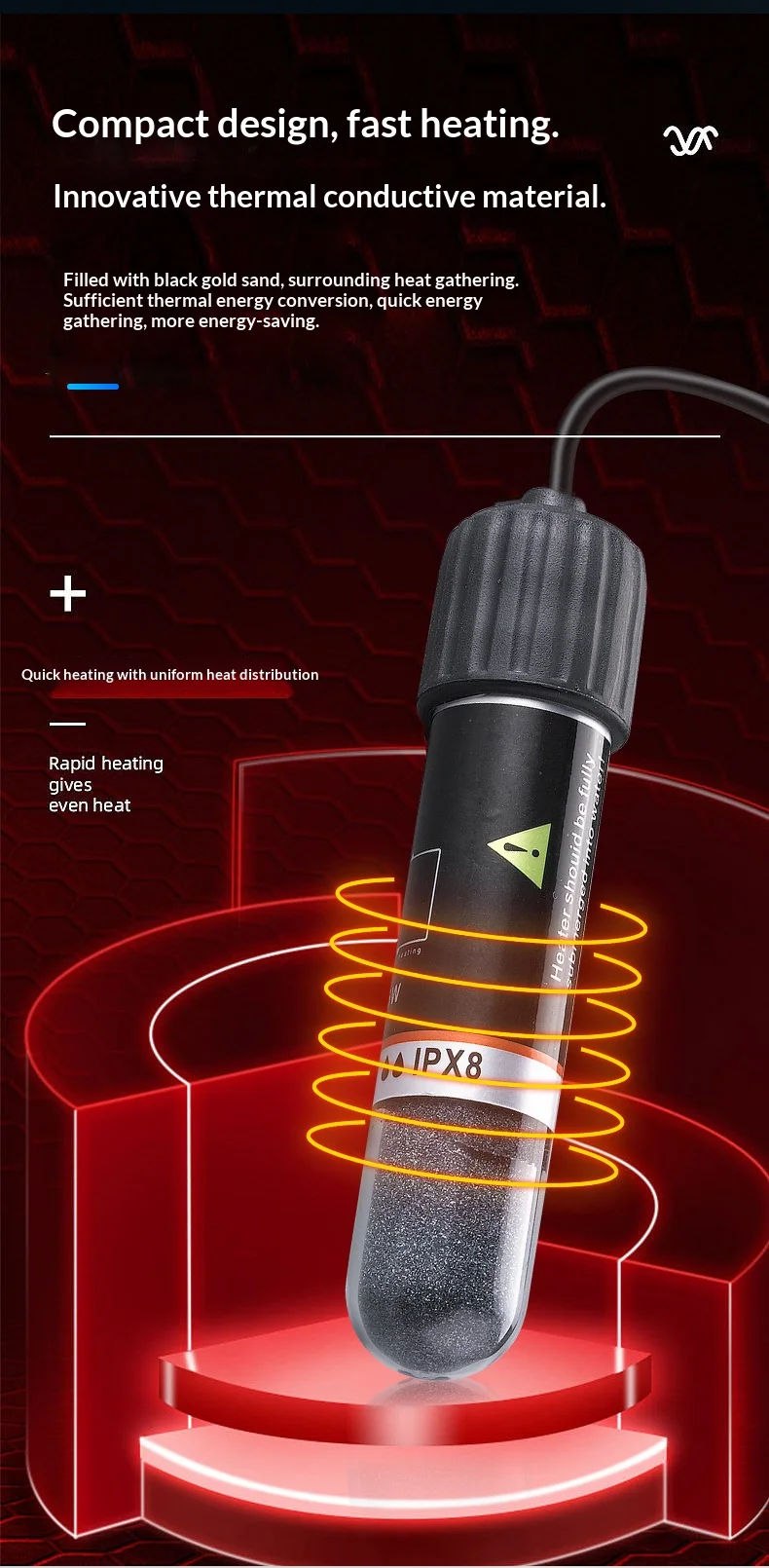 Two heating rods can be used in one fish tank to increase the heating capacity, for example, two heating rods can be used simultaneously in a fish tank with 4L water capacity.