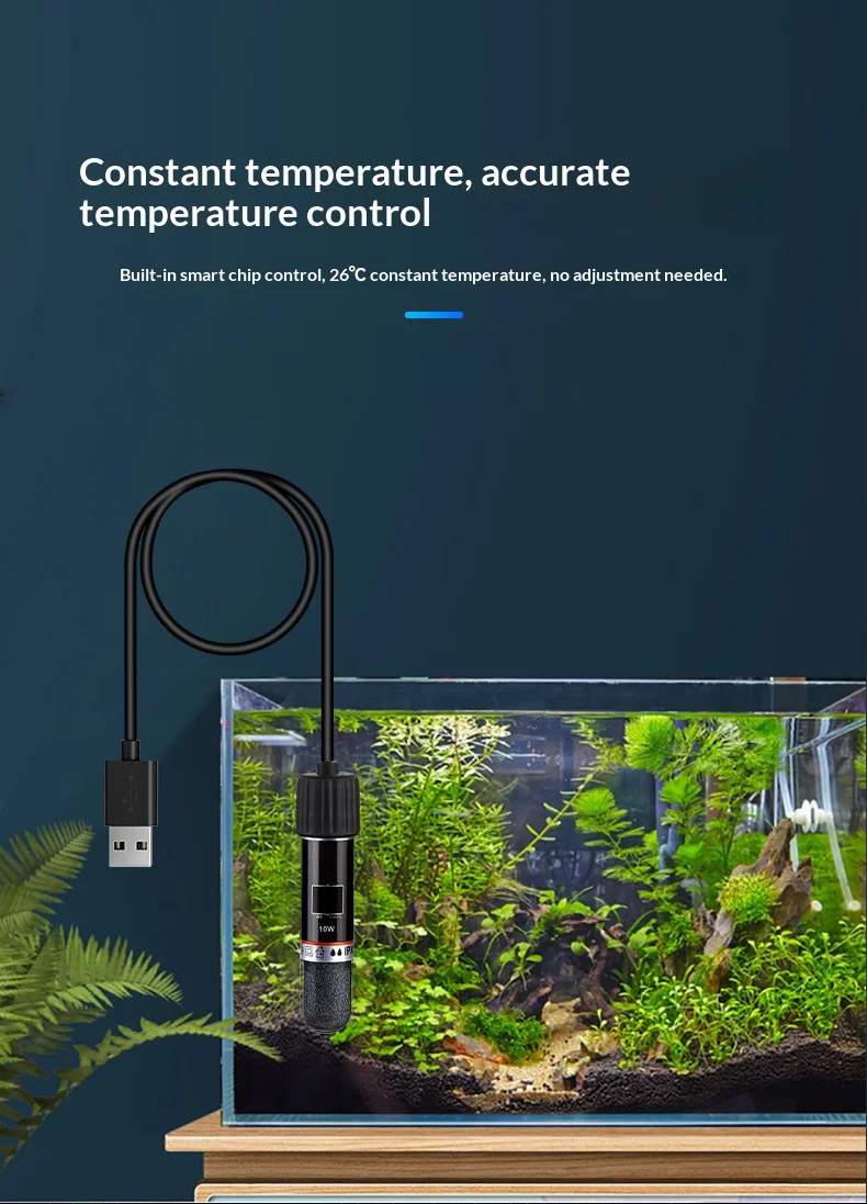 USB Mini Aquarium heating rod for Small Fish Tank 26°C Constant Temperature Aquarium Heater Submersible Thermostat Heater 10W