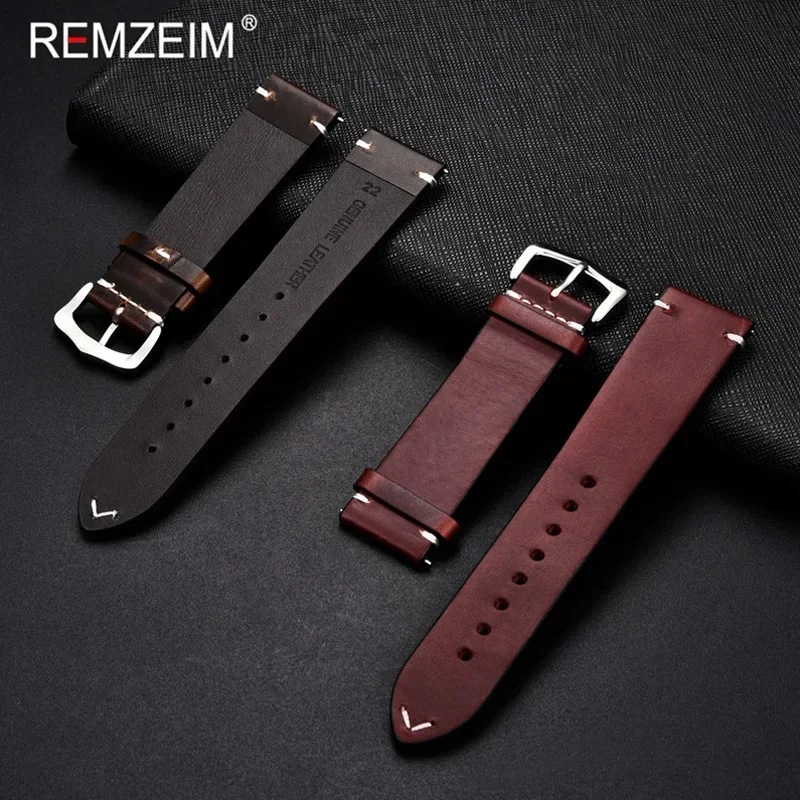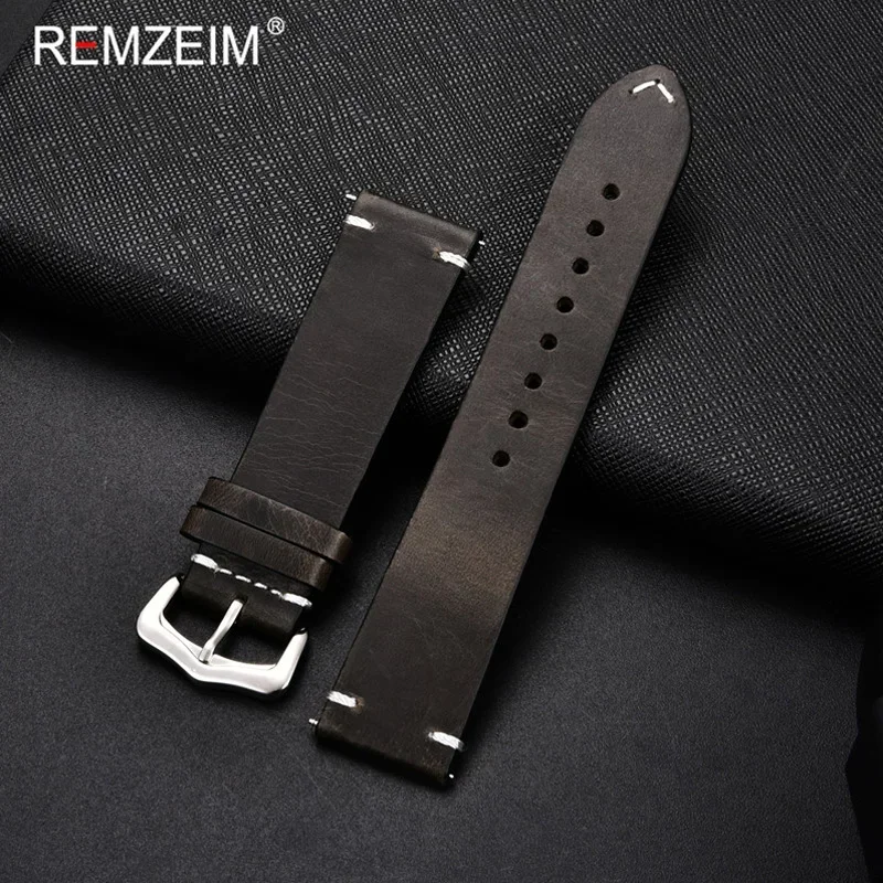 Vintage Oil Wax Leather Watch Strap 18mm 20mm 22mm 24mm Universal Leather Watchb