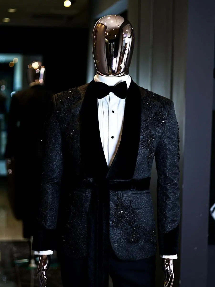Wedding Men Suits Tuxedos Modern Groom Suit Formal Attire Applique Sequined Shaw