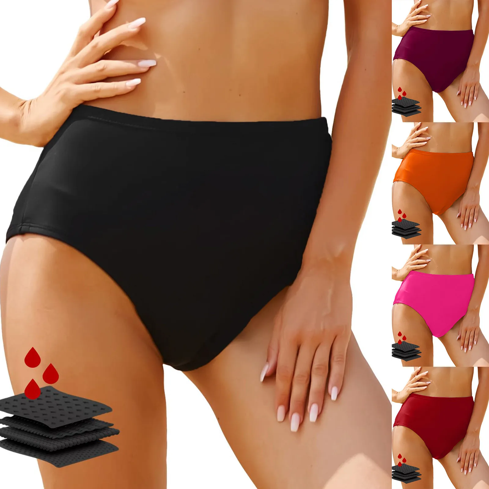 Women's Black High Waisted Bikini Bottoms Retro Basic Full Coverage Swimsuit Mid Waist Bathing Suit Bottom