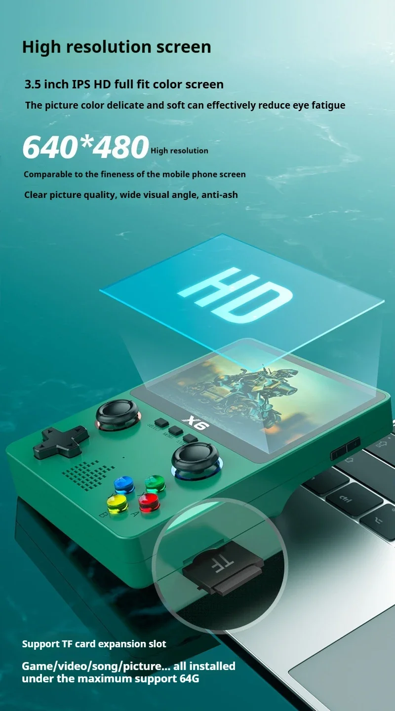 X6 Handheld Game Console 3.5 Inch HD Portable Retro Video Game Console Over 1000